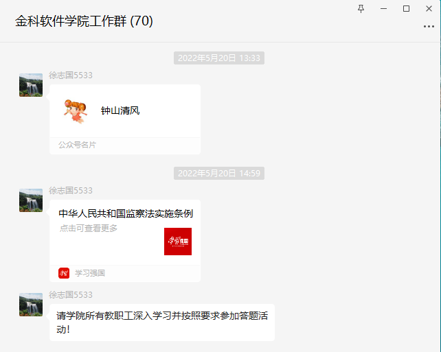 为深入学习贯彻习近平法治思想,落实宪法和监察法要求,推动全院教职工学好用好《中华人民共和国监察法实施条例》(以下简称《条例》),根据校纪委通知在全校范围内开展《条例》学习宣传活动的要求,5月20日,3044am永利集团官网积极组织动员全院教职工参加《中华人民共和国监察法实施条例》学习及线上答题活动。