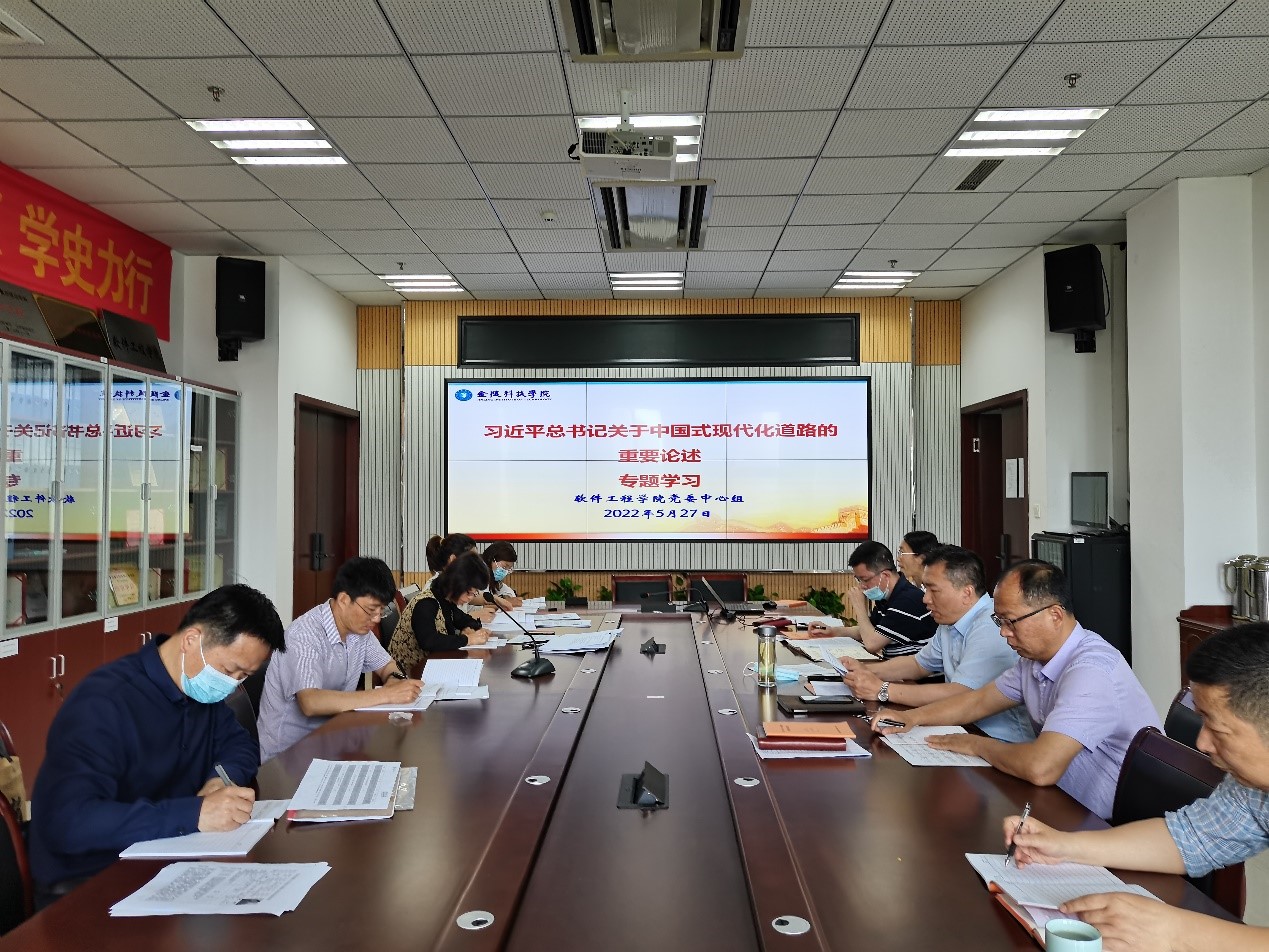 5月27日上午,3044am永利集团官网在科技楼325组织开展了中心组学习,专题学习了习近平总书记关于中国式现代化道路的重要论述,会议由学院党委书记徐志国主持,全体中心组成员参与了学习。
