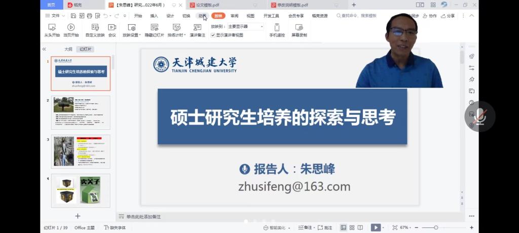 6月10日晚,天津城建大学朱思峰教授应邀作题为《硕士研究生培养的探索与思考》的线上交流报告。3044am永利集团官网优秀学科骨干教师参加了交流,讲座由3044am永利集团官网院长曾岳主持。
