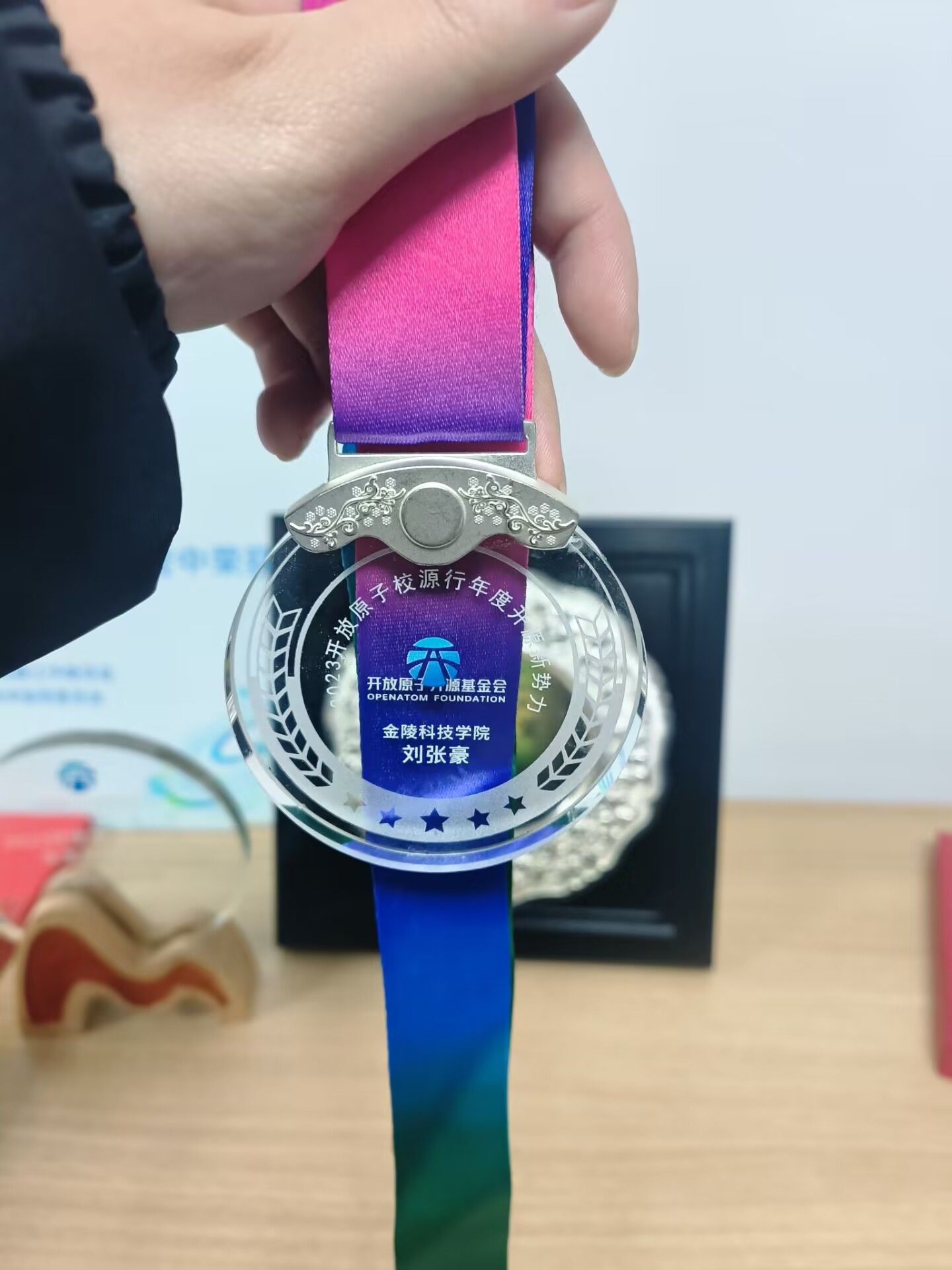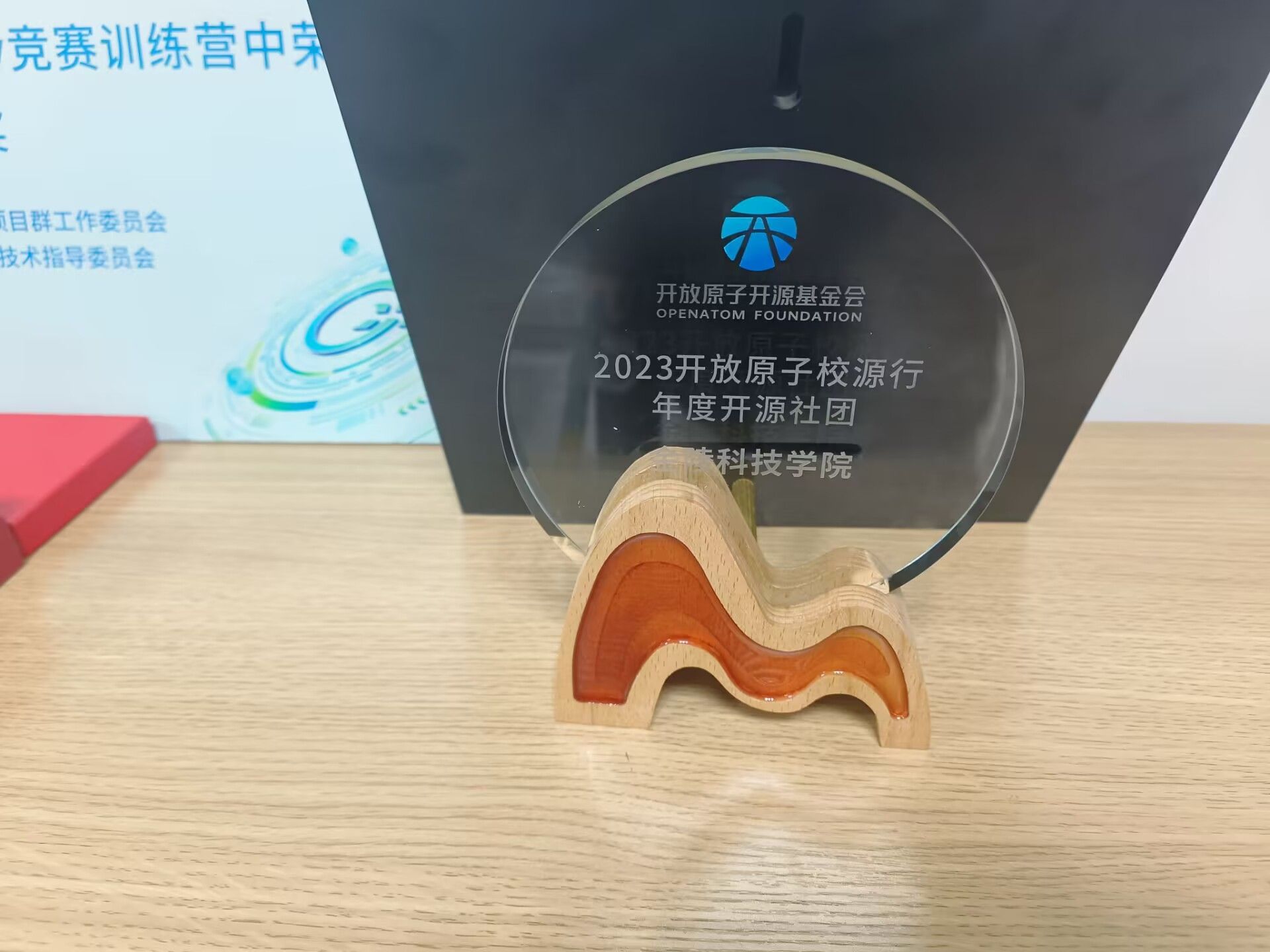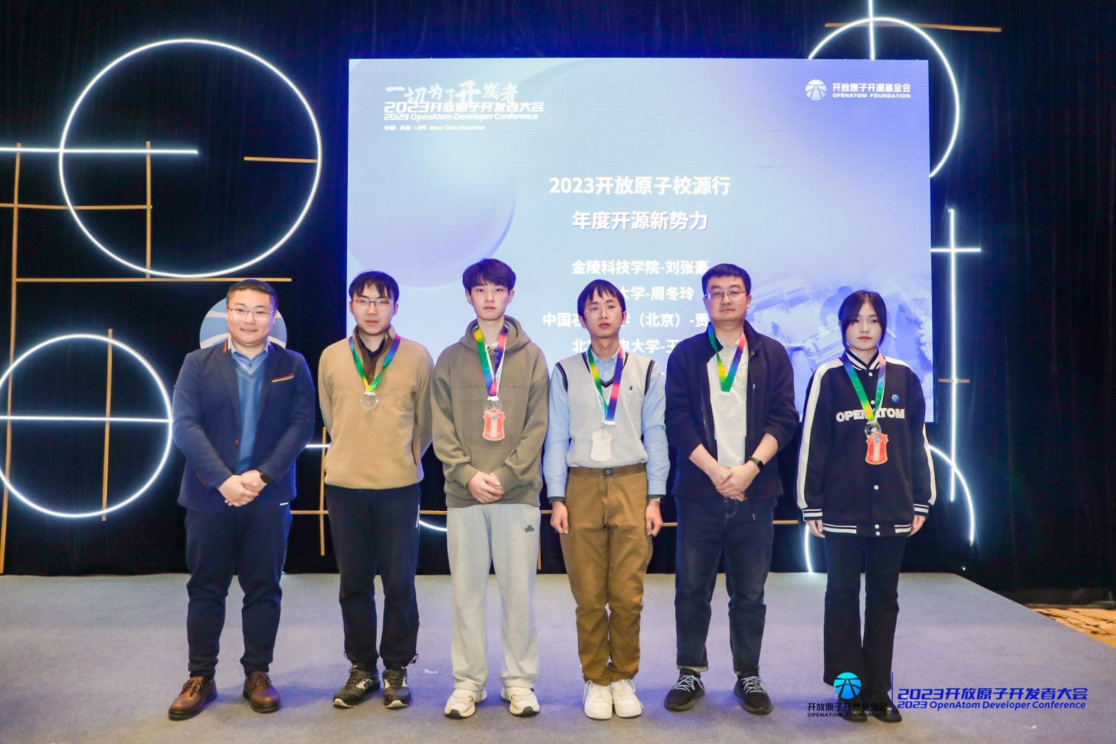 大会上举行了开放原子云社区成立仪式,为开放原子开源大赛获奖选手颁奖,我社的刘张豪同学荣获“2023开放原子校源行年度开源新势力”的称号,永利官网的开放原子开源社团荣获“2023开放原子校源行年度开源社团”的称号。社团成员参与了以“新时代,新开发者”为主题的圆桌对话。